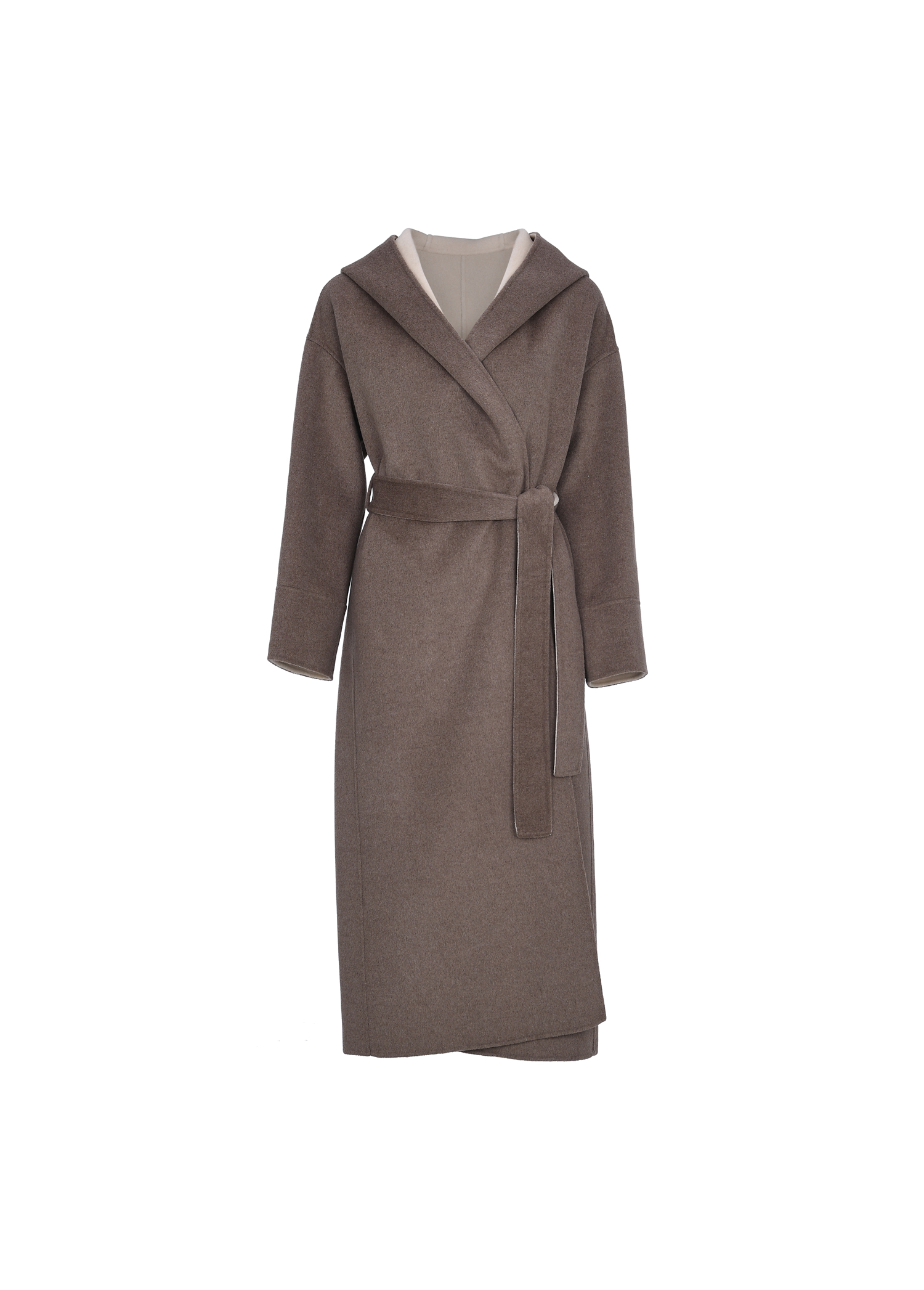 배색 후드코트 (베이지브라운)